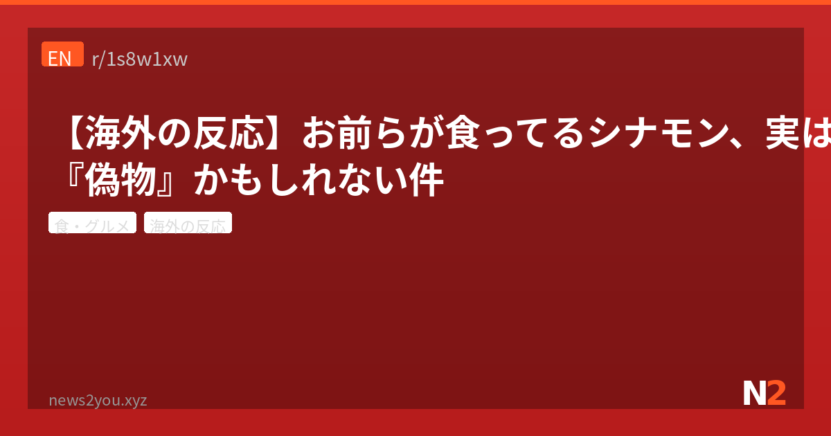 海外掲示板で「アメリカで売られてるシナモンのほとんどは、本物のセイロンシナモンじゃなくてカシアシナモンだった」という投稿が話題になっていました。しかもセイロンシナモンとして売られてる商品にも、カシアが混ぜられてることがあるとか。日本でもシナモンロールやチャイでおなじみのスパイスですが、普段口にしてるのは果たしてどっちなのか…?海外の反応をまとめました。