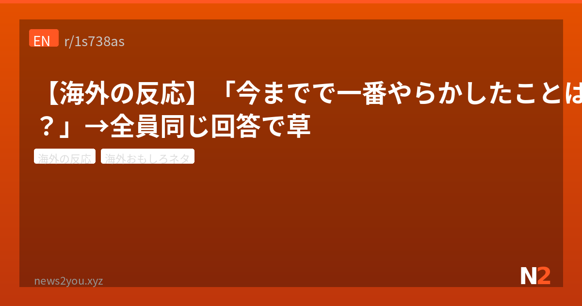 海外掲示板Redditで「今までで一番やらかしたことって何?」というスレが立ったんだけど、コメント欄が予想外すぎる展開になってて腹筋崩壊したw なんと1,691件のコメントがほぼ全部同じ答えに収束していくという奇跡。2,300以上のスコアを叩き出したこのスレ、さっそく見ていこう。