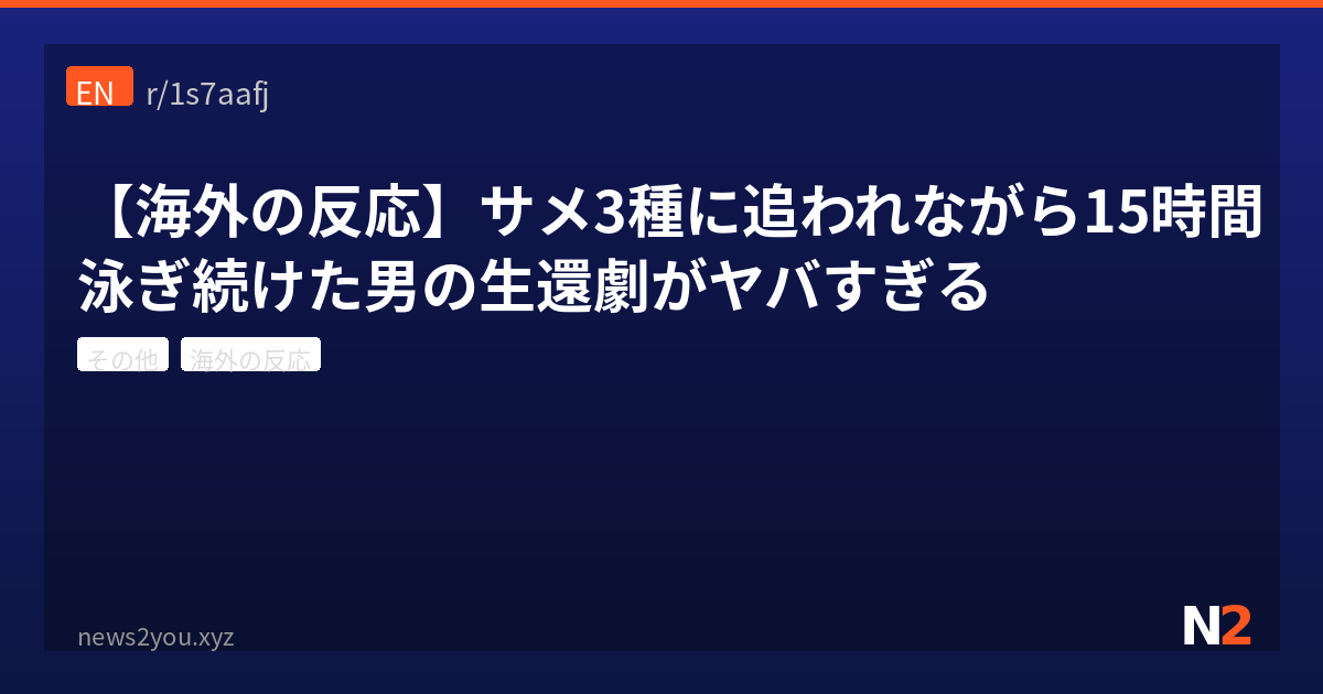 サメに追われながら15時間泳いで生還とか、もはや映画の脚本でもボツにされそうなレベルの実話。ただコメント欄で指摘されてた通り、サメが本気で襲ってたら人間が勝てるわけないので、実際は「好奇心で観察してた」説が有力っぽい。とはいえ、サメに囲まれながら15時間泳ぐメンタルは普通じゃないし、しかも脳性麻痺を抱えてたって情報まで出てきて、もう人間の生命力の底知れなさに脱帽するしかない。日本だと遠泳といえば臨海学校の1kmくらいだけど、大西洋で15時間はスケールが違いすぎる。サメの種類を見分ける余裕があったのも含めて、この人のサバイバル能力は異次元。みんなは海でサメに遭遇したらどうする? 俺は多分3秒で気絶する自信あるわ。