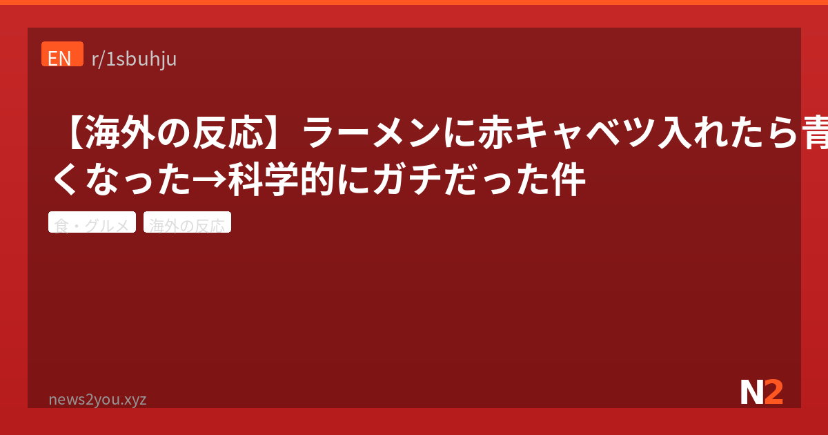 海外掲示板Redditで「ラーメンが青くなった」という投稿が話題に。赤キャベツを入れただけでスープが真っ青になったその理由、実はちゃんとした化学反応だったんです。見た目のインパクトがすごすぎて、海外ユーザーも大盛り上がりでした。
