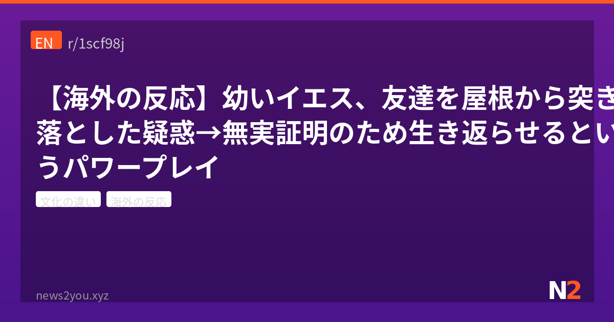 聖書の正典には載らなかった「トマス幼子福音書」という外典に、幼少期のイエスのぶっ飛んだエピソードが記されているらしい。友達を屋根から突き落としたと疑われたイエスが、なんとその子を復活させて「俺は突き落とされてないよ」と証言させたというのだ。海外掲示板Redditでこの話題が大盛り上がりしていたので、反応をまとめてみました。