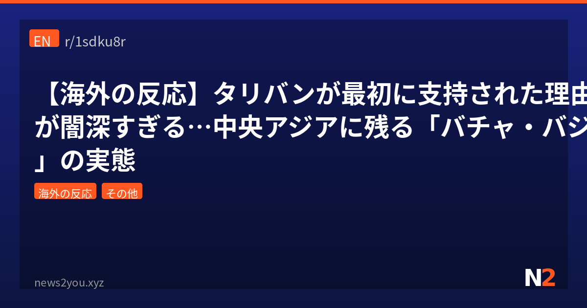 ✍️ 管理人: 元の投稿タイトルだと「踊らされる」って書いてあるけど、実態はそんな生ぬるいもんじゃないってことやな。これ日本のメディアだと「少年が踊りを強制される風習」みたいにマイルドに報道されがちなんだけど、海外のジャーナリズムではもっと直接的に性的暴行の実態を伝えてる。バチャ・バジの「バジ」は「遊び」って意味なんだけど、遊びどころの話じゃないわ。Redditでは元投稿のタイトルが婉曲的すぎるって指摘が複数あったし、問題の深刻さを正確に伝えるべきってのはぐう正論やと思う。