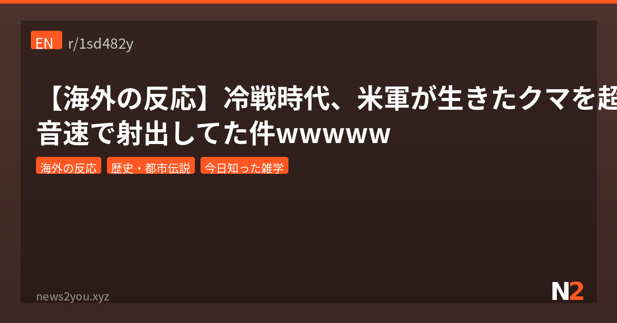 ✍️ 管理人: ソースの詳細を貼ってくれる有能ニキ、Redditに必ずいるよな。助かるわ。で、最後のオチが秀逸すぎるんよ。「人間も解剖して確認しなかったの?」っていう皮肉で、クマの扱いのヤバさを浮き彫りにしてるわけ。ちなみに時速870マイルって約1,400km/hで、これ東京から博多まで約1時間で着く速度なんよ。高度35,000フィート(約10,700m)は普通の旅客機の巡航高度とほぼ同じ。そこから射出されて7分49秒で無傷着地って、カプセル自体の性能はガチで凄いんだけど、その後安楽死させるのが前提ってのが冷戦マインドすぎて震えるわ。