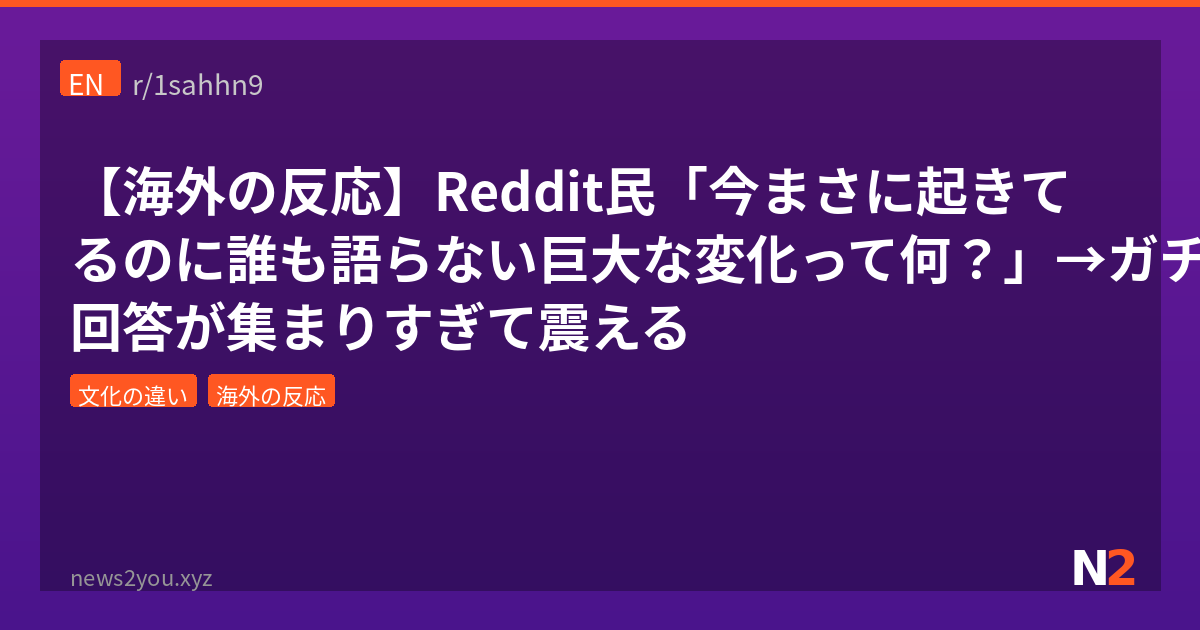 海外掲示板Redditの人気サブレ r/AskReddit に「今まさに起きてるのに、誰も話題にしてない一番大きな変化って何?」というスレが立って、1500以上のスコアと385件のコメントが集まったんよ。識字率の低下、集中力の崩壊、サブスク地獄、AIによる現実感の喪失……ガチで考えさせられる回答が続々と出てきて、読んでるだけで背筋がヒヤッとする内容ばっかりだったわ。今回はその中から特に刺さったコメントを厳選して紹介するで。