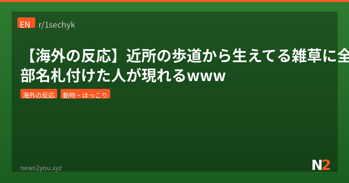 ✍️ 管理人: シンプルなリアクションだけど、まぁ気持ちはわかるわ。歩道の雑草にわざわざラベル貼るって発想がもうやばいもんな。日本だとこういうことする人って「変わった人」扱いされがちだけど、海外だとRedditで2800upvote貰えるんだから文化の違いを感じる。個人的にはこういう無駄に丁寧なことする人めっちゃ好きだわ。