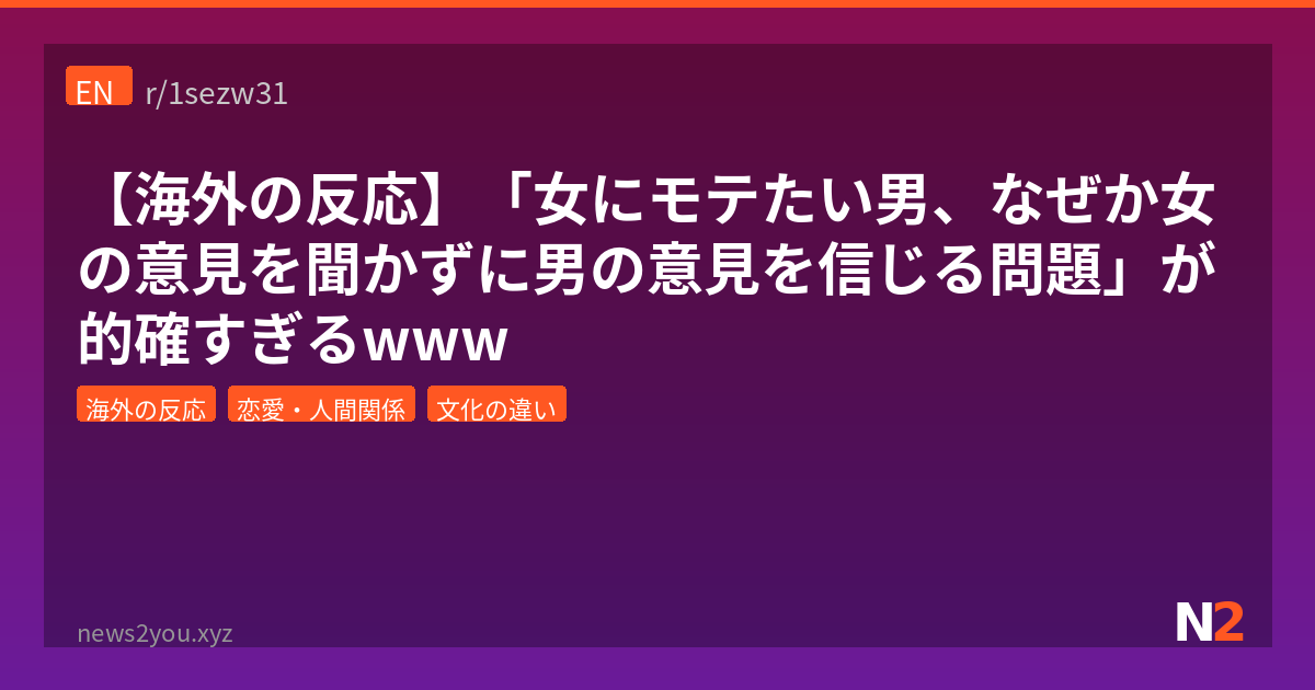 「女性にモテたいなら、女性に聞けばいいじゃん」——そう思うやろ?ところがRedditで「なぜモテたい男は女性の意見じゃなくて、他の男の意見を参考にするのか」ってスレが立って大議論になっとるんよ。しかもこのスレ、「魚を釣りたいなら魚に聞くな、釣り人に聞け」って比喩が何十回も書き込まれて、投稿主がブチギレ追記するっていうカオスな展開にwww 恋愛における「建前と本音」問題、海外ニキたちの分析がなかなか鋭いんで紹介するわ。