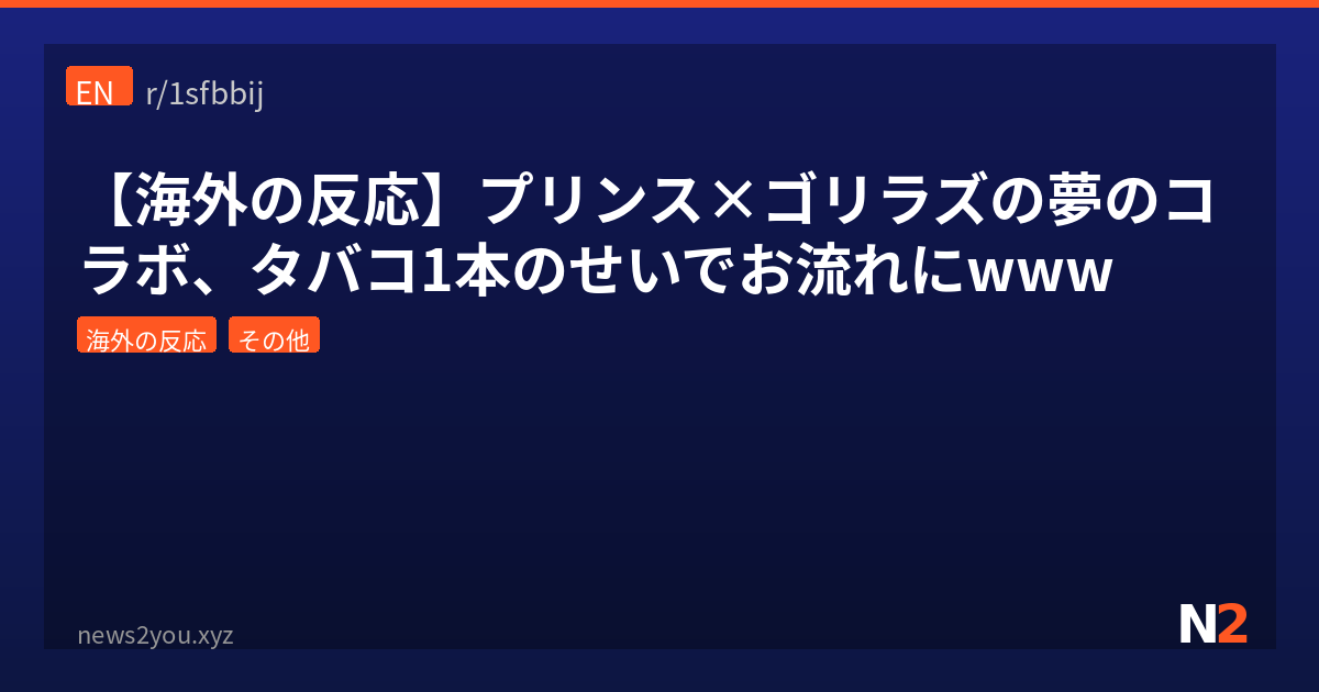 いやー、タバコ1本で音楽史が変わるかもしれなかったって話、ロマンありすぎるわ。でもコメント欄見てると「そもそもこの2人が組むのが無理ゲーだった」って意見が大半で、タバコは単なるきっかけに過ぎなかったんだろうな。プリンスもアルバーンも自分のアートに対するこだわりが異常に強い人で、それがぶつかった結果がこれっていう。日本の音楽業界だとプロデューサー主導でコラボが決まることが多いけど、海外、特にプリンスクラスになると本人の意向が絶対だから、こういう「幻のコラボ」がゴロゴロ転がってるんよな。フレディ×マイケルの話もそうだけど、レジェンド同士のコラボって実現しない方が伝説になるパターンあるよな。ちなみにゴリラズはその後もデヴィッド・ボウイやアンドレ3000との「幻のコラボ」話がいくつもあって、実現してたら音楽史変わってたかもしれない案件が山ほどある。みんなは「もし実現してたら聴きたかった幻のコラボ」って何かある?ワイは個人的にフレディ×プリンスが聴きたかったわ。