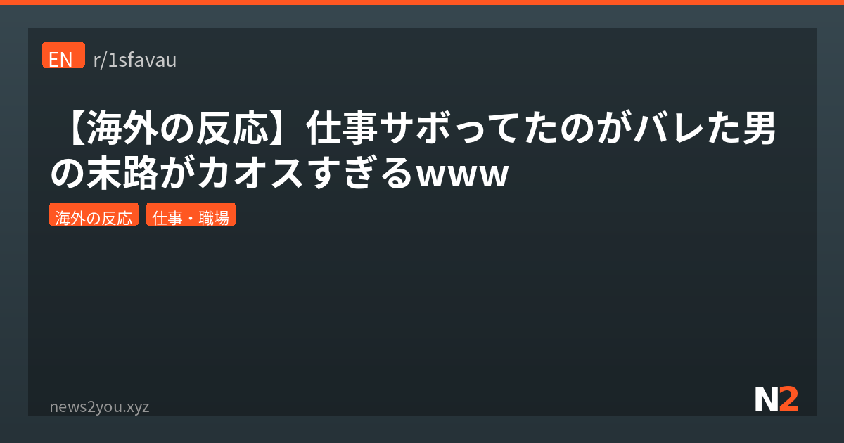 ✍️ 管理人: 正論パンチwww でもまあこれ言うのは簡単やけど、実際海外のReddit見てると「いかに効率よくサボるか」みたいなスレが定期的に立つんよな。アメリカだと「quiet quitting(静かな退職)」って言葉が2022年頃にバズったけど、あれは「最低限の仕事だけやる」って意味で、スレ主の場合は最低限すらやってないからもはや「loud quitting」やろ。日本だと「働かないおじさん」問題として社会問題にもなってるし、サボりの是非は万国共通のテーマなんやな。