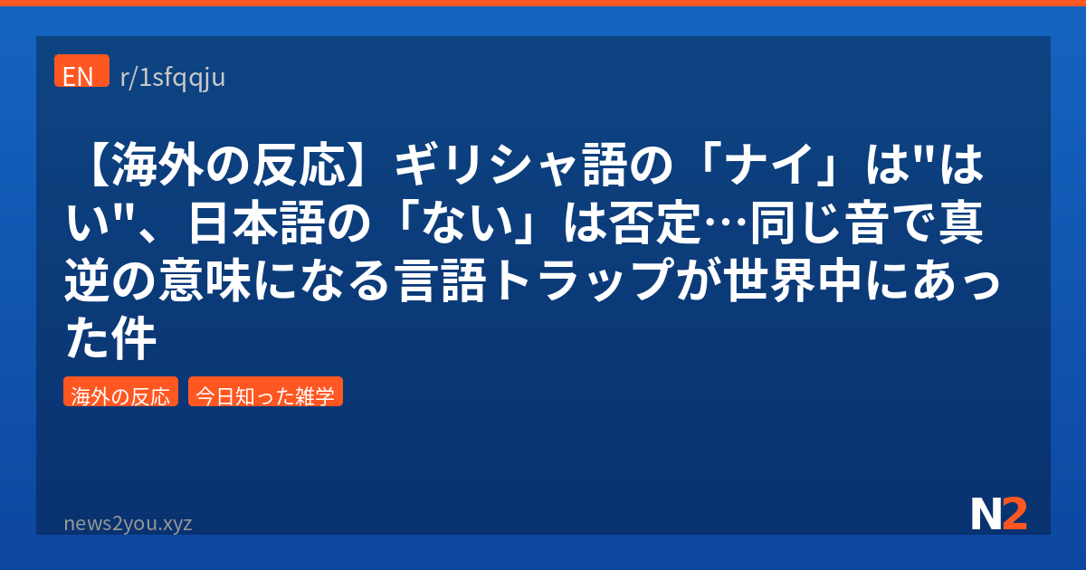 ギリシャ語で「ναι(ナイ)」って言ったら「はい」って意味なの知ってた?でも日本語で「ない」って言ったら完全に否定やんな。同じ発音なのに意味が正反対っていう、言語のバグみたいな現象が世界中にゴロゴロあるらしいんよ。Redditの「NoStupidQuestions(バカな質問なんてない)」っていうサブレで、このネタが盛り上がってたからまとめてみたで。多言語話者たちが続々と「うちの言語にもあるぞ」って報告してきて、もう言語カオス祭りや。