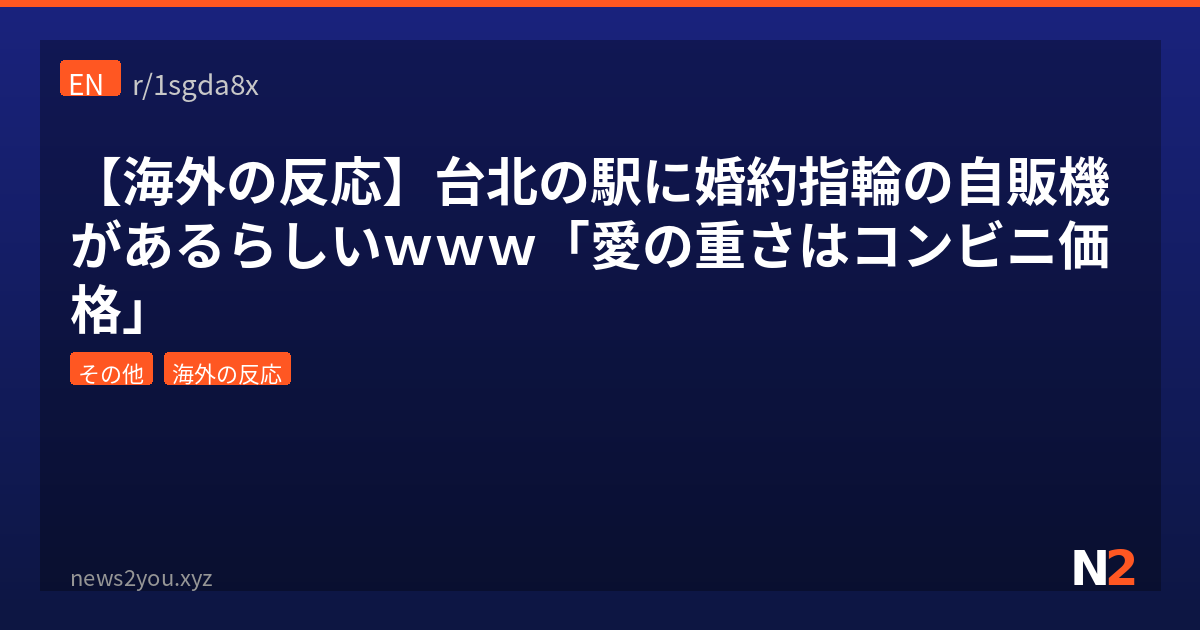 今回は台北の駅にある婚約指輪の自販機について紹介したけど、これって結局「愛に値段をつけるな」vs「便利さは正義」っていう永遠のテーマなんよな。日本だと婚約指輪は「給料3ヶ月分」って言われて平均35万円くらいだけど、台湾の自販機は1万4000円〜30万円とかなり幅広いラインナップ。日本もガチャガチャ文化では世界一だし、カプセルトイの市場規模は年間600億円超えてるけど、さすがにリアル婚約指輪をガチャにする発想はなかった。治安がいいからこそ成り立つビジネスモデルってのも面白いポイントで、これは日本と台湾の共通点やな。Redditでベガスとの比較が出てたのも秀逸で、「衝動婚の聖地にこそ必要だろ」ってツッコミは笑った。個人的には日本の駅にも導入してほしいけど、日本人の性格的に「自販機で買った指輪でプロポーズ」は社会的に死ぬリスクが高すぎるわ。みんなは自販機の指輪でプロポーズされたら、アリ?ナシ?