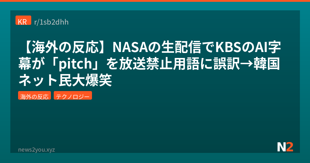 【海外の反応】NASAの生配信でKBSのAI字幕が「pitch」を放送禁止用語に誤訳→韓国ネット民大爆笑