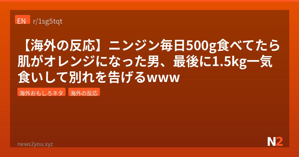 ✍️ 管理人: ワイも同じこと思ったわ。TIFUって「Today I Fucked Up(今日やらかした)」の略なんだけど、たまにこういう「やらかし」のスケールが斜め上すぎて反応に困るやつが流れてくるんよな。日本の2chで言う「スレタイだけで草」ってやつ。でも毎日500gって冷静に考えるとヤバくて、ニンジン1本が大体150〜200gだから、毎日3本は確実に食ってる計算になる。しかもそれを日常として普通にやってたのがすごい。個人的にはそこまでハマれる食材があるのちょっと羨ましいわ。