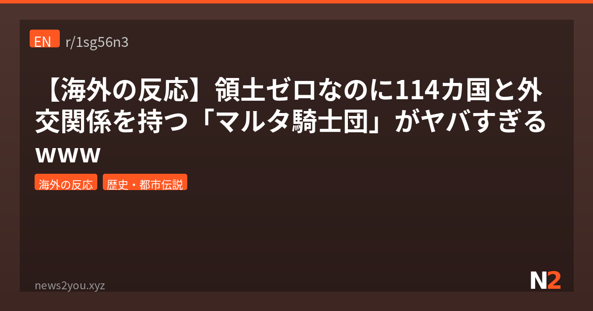 おまいら、「国」って名乗るには領土が必要だと思うやろ?ところがどっこい、領土ゼロなのに114カ国以上と外交関係を結んで、パスポートまで発行してる謎の組織があるんよ。その名も「マルタ騎士団」――正式名称は「エルサレム、ロードス及びマルタにおける聖ヨハネ主権軍事病院騎士修道会」。名前が長すぎて草。十字軍の時代に生まれたカトリックの騎士団が、900年以上経った今も国際法上の「主権主体」として存続してるとか、歴史のバグみたいな存在なんよな。Redditの r/todayilearned でこいつらが話題になってたから紹介するわ。