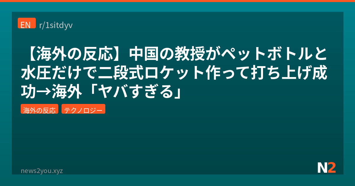 おまいら、ペットボトルロケットって小学校の時やったことあるやろ?あの水入れてシュポシュポするやつ。今回はそのペットボトルロケットのガチ勢が中国で見つかったんよ。なんと大学教授が学生たちと一緒に、ペットボトルと水圧だけで「二段式ロケット」を作って実際に打ち上げちゃったっていう動画がRedditで話題になってるんだわ。二段式って、あのステージ分離するガチのロケットと同じ仕組みやぞ?しかも電子部品一切なしで。