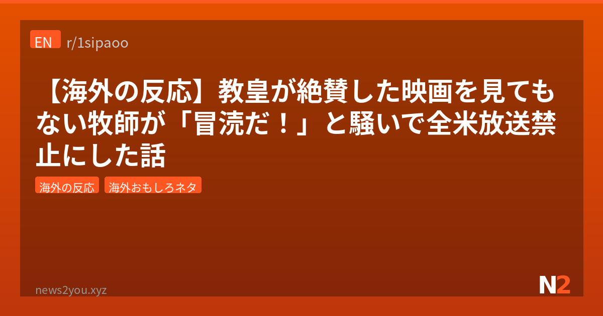 【海外の反応】教皇が絶賛した映画を見てもない牧師が「冒涜だ!」と騒いで全米放送禁止にした話