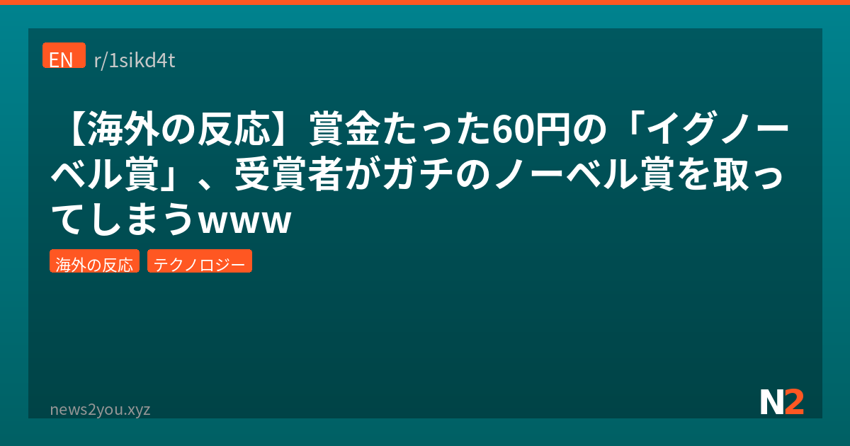 お前ら「イグノーベル賞」って知ってるか?「まず人を笑わせ、それから考えさせる」科学業績に贈られるパロディ賞なんだけど、賞金がジンバブエドルで10兆ドル=日本円で約60円っていう最高にふざけた額なのよ。ところがこの賞、受賞者の中からガチのノーベル賞受賞者が出てるし、日本人も常連で毎年ニュースになるレベルなんだわ。Redditのr/todayilearnedで盛り上がってたからまとめたぞ。