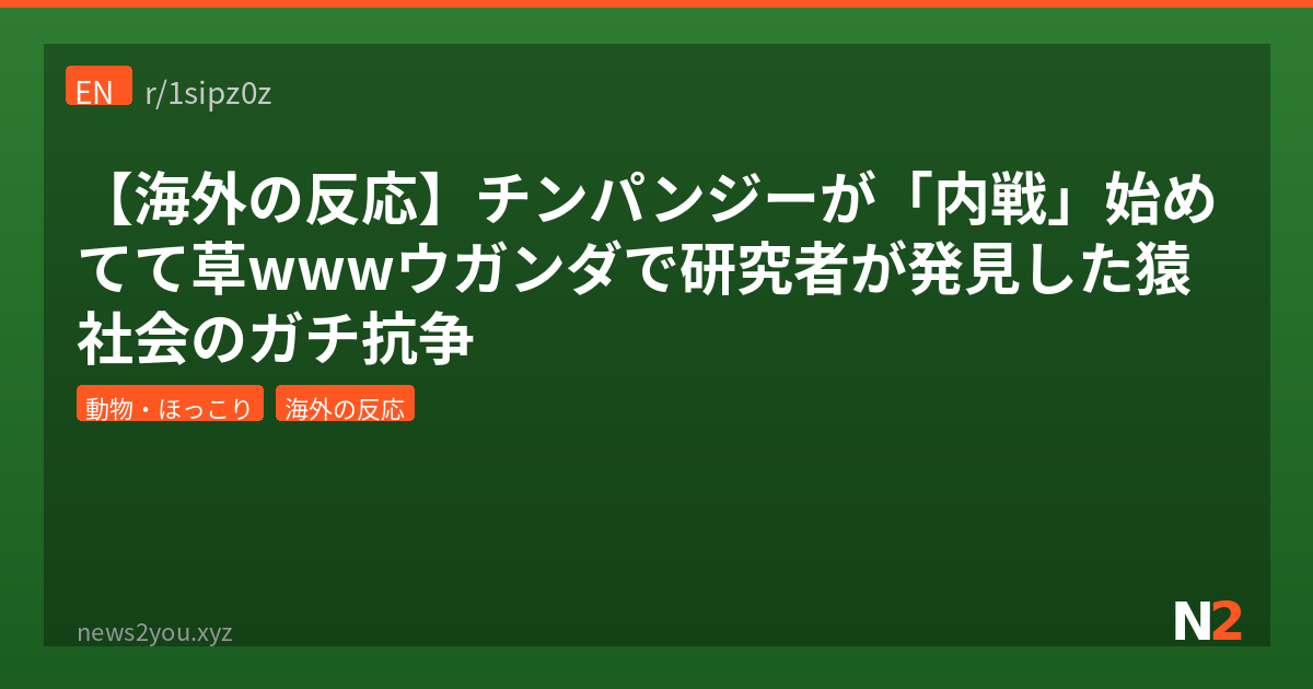 おまいら、チンパンジーが内戦してるって聞いたことある?ウガンダの森で長年チンパンジーを観察してきた研究者たちが、群れ同士のガチの抗争…つまり「内戦」が起きてるって報告したんよ。しかもこれがただの小競り合いじゃなくて、領土争い・奇襲・殺害まである本格的なやつ。チンパンジーって人間と約98.7%のDNAを共有してるって言われてるけど、戦争までシェアしなくてもよくない?ってことでRedditでも大盛り上がりだったから紹介するわ。