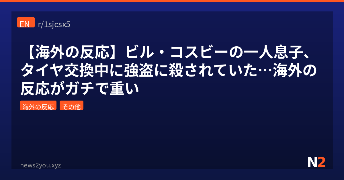 おまいら、ビル・コスビーって知ってるよな?アメリカの国民的コメディアンで「コスビー・ショー」っていう超有名シットコムで一世を風靡した人物なんだけど、実はこの人の一人息子エニス・コスビーが1997年にめちゃくちゃ悲惨な事件で亡くなってるんよ。しかもパンクしたタイヤを路肩で交換してる最中に強盗に撃たれるっていう、あまりにも理不尽な死に方だったんだわ。当時はアメリカ中が大騒ぎになったこの事件、Redditの「今日知った」板でも改めて話題になってたから紹介するで。