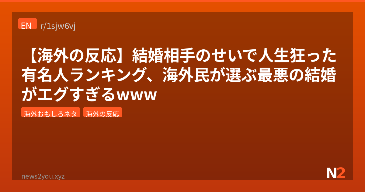 「結婚は人生の墓場」とはよく言うけど、セレブの世界だとその墓場のスケールが桁違いなんよな。Redditで『結婚相手のせいで一番痛い目を見た有名人って誰?』ってスレが立って、コメント2000件超えの大盛況。ハリウッドスターから歌姫まで、結婚で転落した有名人の名前がズラッと並んでてなかなかの地獄絵図だったわ。日本だと「あのカップルは失敗だった」くらいの話題で済むけど、海外セレブの場合はキャリア崩壊レベルまでいくのがマジで怖い。