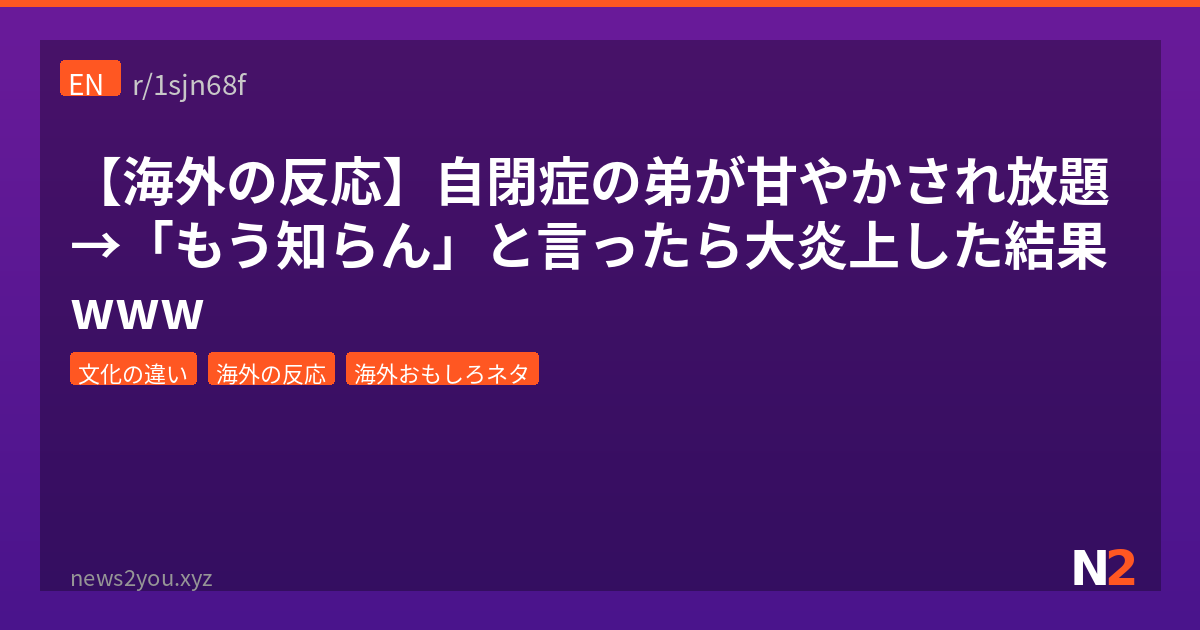 「発達障害だから仕方ない」って、どこまでが配慮でどこからが甘やかしなのか——これ、日本でもめちゃくちゃ議論になるテーマだよな。今回はRedditの定番サブレ「AmItheAsshole(自分が悪いのか判定してもらうスレ)」に投稿された、自閉症の弟を持つ21歳の兄の相談が大バズりしてたから紹介するわ。投稿者自身も自閉症なのがポイントで、「同じ当事者だけどさすがにこれは…」っていう切実な悩みなんよ。弟(19歳)は「ソファ」を「カウチ」って言っただけでブチギレるレベルで、家族全員が腫れ物扱いしてきた結果、もう手がつけられない状態になってるらしい。スコア1300超え、コメント197件の大議論になったこのスレ、さっそく見ていこう。