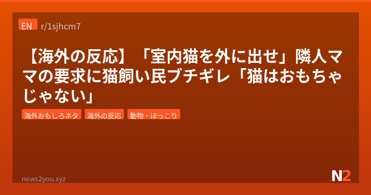 ✍️ 管理人: 最初と最後に「お前は悪くない」を置くサンドイッチ構文、Redditの定番ムーブで草。でも「他人の子どもを幸せにする義務はない」ってのは冷たいようで正論なんよな。日本だと「ご近所付き合い」の文化が強いから、こういう場面で断ると「あの家は冷たい」って噂されるリスクがある。でもアメリカでも結局この母親がご近所に言いふらす可能性はあるわけで、どこの国でも近所付き合いの面倒くささは変わらんのかもしれん。最終的には猫の安全が最優先、これだけは揺るがない。