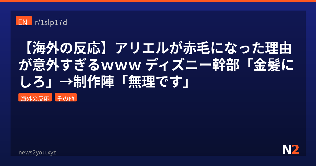 ディズニー映画『リトル・マーメイド』のアリエルといえば、あの鮮やかな赤毛がトレードマークだけど、実はディズニーの偉い人たちは「金髪にしろ」って言ってたらしいんよ。それを制作陣が「いや、技術的にも金髪はキツいし、他にも理由あるんで」ってゴリ押しで赤毛にしたっていうTILスレがRedditで盛り上がってたから紹介するわ。しかもその理由がめちゃくちゃ合理的で、アニメ制作の裏側ってこんな泥臭い事情があるんだなって感心したわ。