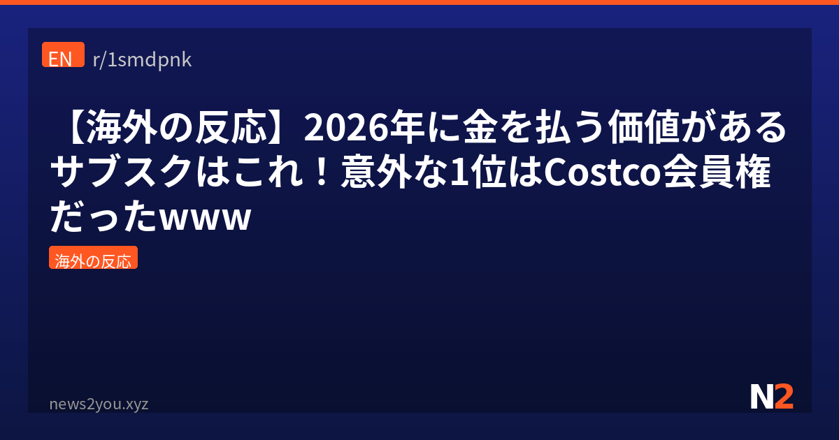 【海外の反応】2026年に金を払う価値があるサブスクはこれ!意外な1位はCostco会員権だったwww