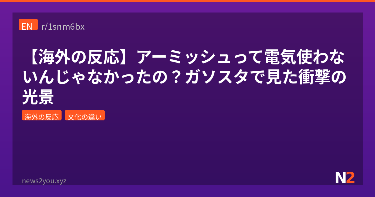 アーミッシュ=電気完全拒否の原始生活、ってのは完全に誤解で、実際は「外部電力網に繋がらない」「技術に生活を乗っ取らせない」っていうかなり洗練された哲学で動いてるんよな。ディーゼルや空圧、場合によってはソーラーまで使いつつ、コミュニティの繋がりを最優先してるってのは、むしろ現代人こそ見習うべき姿勢かもしれん。日本で言うと、スマホ依存で1日10時間スクリーン見てる俺らの方が異常に見えてくるわ。ちなみにアーミッシュ人口はこの20年で倍以上に増えてて現在約40万人、消滅どころか絶賛拡大中らしい。「時代遅れ」って切り捨てられがちやけど、AI時代に入って逆に「人間らしい生活とは何か」って問いが刺さりまくる存在になってる気がする。技術を使うか使わないかを"自分で選択"できるってのが一番の贅沢なんかもな。みんなは1ヶ月スマホなし生活できる?ワイは無理やわ草。
