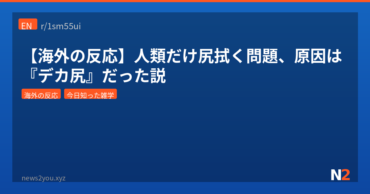 今回のテーマ、下ネタに見せかけて実は進化論と人体工学が絡む奥深い話やったな。人類だけが『尻を拭く』という手間を強いられてる理由は、直立二足歩行のために発達したデカ尻と、座って排便する文化、そして食生活の変化が複合的に絡んでるっぽい。日本の和式トイレが実は人体工学的に優れてたってのは再評価ポイントやし、トイレットペーパー消費量の国別比較で見るとアメリカがダントツ1位(年間141ロール/人)で日本は91ロール/人らしいんよ。ウォシュレット文化のおかげで紙の消費少なめなんやろな。そして最後のオチでチンパンジーも葉っぱで拭いてるっていう事実が判明して、結局『拭く』行為は霊長類共通の文化だったというw こういう素朴な疑問から進化論まで広がっていくのがRedditの面白いとこやわ。みんなは和式と洋式どっち派? ウォシュレット無しの海外旅行行ったときの絶望感、共感してくれる人いるよなw
