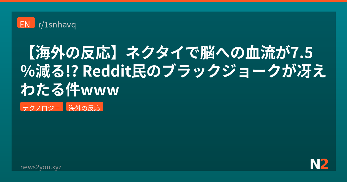 いやー、ネクタイの血流7.5%減問題、想像以上にRedditで盛り上がってて笑ったわ。研究自体は被験者30人のMRIテストっていう小規模なやつやから、過剰に怯える必要はないけど、「なんとなくキツくて嫌」っていう体感が科学的に裏付けられたのは面白いよな。日本ではクールビズ導入から20年経って、夏場のノーネクタイはすっかり定着したけど、欧米では今もビジネス=スーツ+タイの文化が根強い国も多いんよ。冠婚葬祭や就活では日本でもまだ必須アイテムやし、完全排除はまだ先の話やろな。それにしても、Reddit民の「100%減らせばゼロにできる」系のブラックジョーク、毎回キレ味鋭くて好きやわ。日本のネット民も不謹慎ネタ得意やけど、英語圏のdark humorはもう一段踏み込んでる感ある。みんなは普段ネクタイ締める派? それともクールビズ派? ワイは完全リモート勢やから、スーツ自体が先月ホコリかぶってたで…
