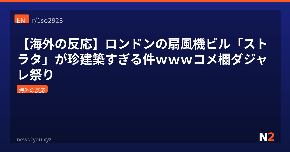 というわけでロンドンの珍建築「ストラタSE1」、デカい風力タービン3つが見た目のインパクトは抜群なのに稼働してないっていう残念すぎる物件やったわw 環境配慮型建築を謳って作ったのに住人の苦情で即停止、しかも最悪建築賞まで受賞っていう、企画倒れの教科書みたいな事例なんよな。日本でも風力発電の低周波問題は度々議論になってて、特に住宅地近辺だと稼働率落とすケース結構あるから、この失敗は他人事ちゃうで。あと地味にコメ欄のダジャレ合戦が秀逸で、「OnlyFans本社」「アンチファン」とか一瞬で思いつくセンスさすがやなって。海外Redditのpun文化、日本の大喜利文化と似てるようで違う独特の味があって好きなんよ。みんなは見た目優先のトンデモ建築と実用性重視の無難な建築、どっち派? ちなみにワイは話のネタになる珍建築派やわw