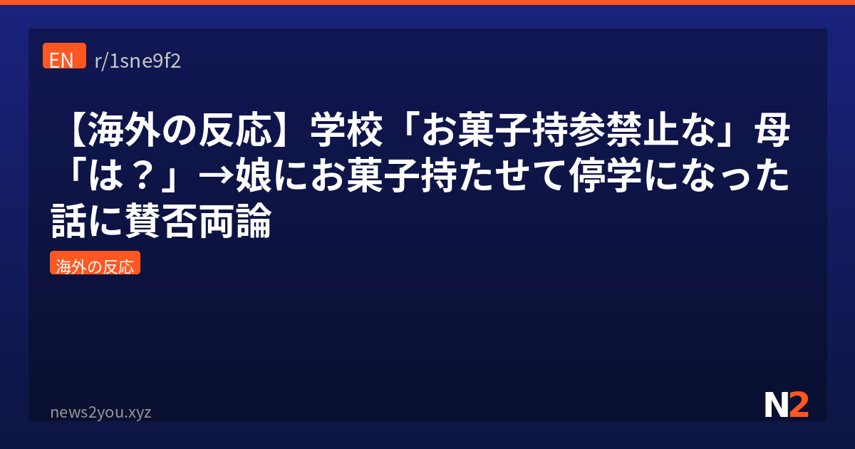 ✍️ 管理人: 「学校側もアホ、でもお前もアホ」っていう冷静なジャッジ好きやわ。アメリカでは2010年にミシェル・オバマ元大統領夫人が「Let's Move!」っていう子どもの肥満対策キャンペーンを始めて以降、学校給食の栄養基準がガッツリ厳しくなった経緯があるんよ。その流れで「学校敷地内での甘い物全面禁止」みたいな極端な学校も出てきてる。日本人からすると「誕生日ケーキも禁止?やりすぎやろ」って感じやけど、アメリカの小児肥満率は約20%で日本(約10%)の倍やから、向こうの危機感はガチなんよな。