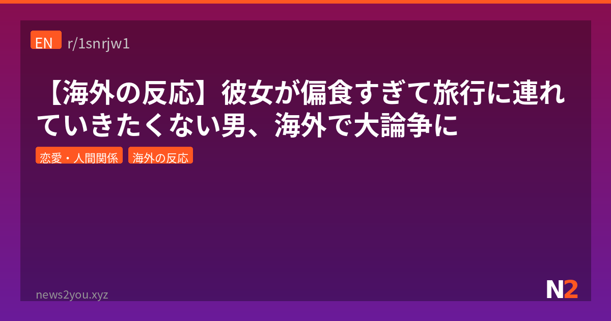 アメリカのRedditで「36歳の彼女がガチの偏食すぎて一緒に旅行したくない俺ってクズ?」ってスレが大炎上してるんよ。野菜ゼロ、ハンバーガーはチーズとパティだけ、タコスはタコベルのみ…レベルの偏食彼女に、彼氏は月1回だけ一人で外食する「許可」をもらってるらしい。これ食の相性の話なのか、それとも別の問題なのか、海外ニキたちがガチ考察しまくっててワロタ。
