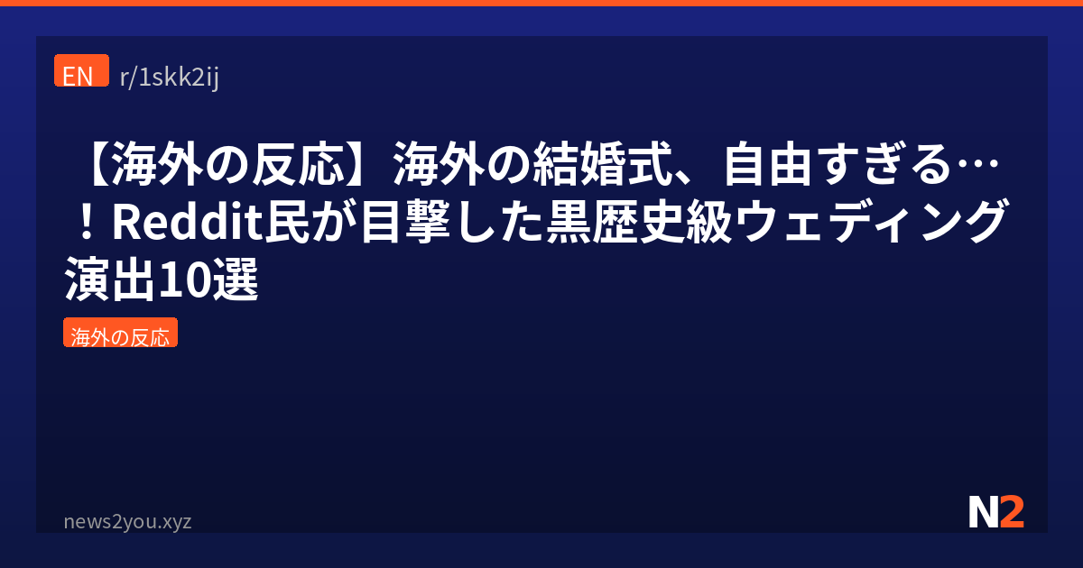 結婚式って一生に一度の晴れ舞台やけど、海外では自由度が高すぎてたまに「う、うーん…」ってなる演出が飛び出すらしい。Reddit民が実際に目撃した“黒歴史ウェディング”エピソードがガチで濃すぎた。ちなみにアメリカの結婚式の平均費用は約3.5万ドル(約520万円)らしいけど、金かけてもセンスは別問題なんよな…。
