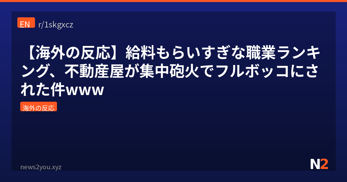 海外掲示板r/AskRedditで「どの職業がもらいすぎだと思う?」ってスレが立って、これが3000コメント超えの大盛り上がりになってるんよ。で、フタを開けてみたら不動産屋が袋叩きで草。アメリカだと売買価格の5-6%が仲介手数料で消える文化だから、恨み節が凄まじいんだわ。