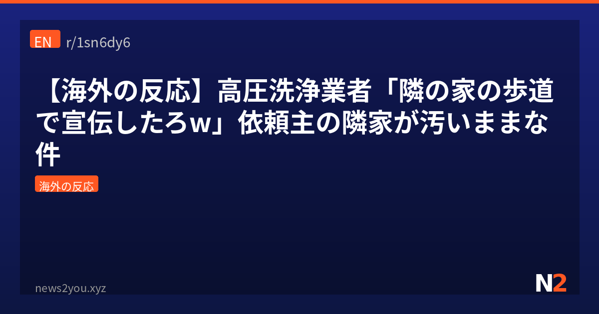 今回は海外の高圧洗浄業者のえげつない宣伝手法についてまとめたけど、やっぱり世界中どこでも「迷惑広告あるある」は存在するんだなって実感したわ。日本だと電柱の違法看板とかマンションのポスティングチラシくらいだけど、海外は鍵屋のシール・車のフロントガラスへの挟み込み・頼んでないのに作業する業者など、かなりアグレッシブな手法が多いんよな。特にアメリカは「広い一軒家文化」だからこそ、家主を狙った訪問営業系トラブルが多発してるのが興味深いポイント。ちなみに高圧洗浄って業者に頼むと平均5万〜10万円するけど、家庭用なら1万円台から買えるから、このスレ的には「自分でやれ」が最適解っぽい。最後のコメントで取り締まり担当者が出てきて即アウト判定してたの、Redditの「プロ湧いてきた」展開で個人的にめっちゃ好きだわw みんなの身近でも「これは迷惑すぎるやろ」って宣伝手法ある?コメント欄で教えてくれ〜。