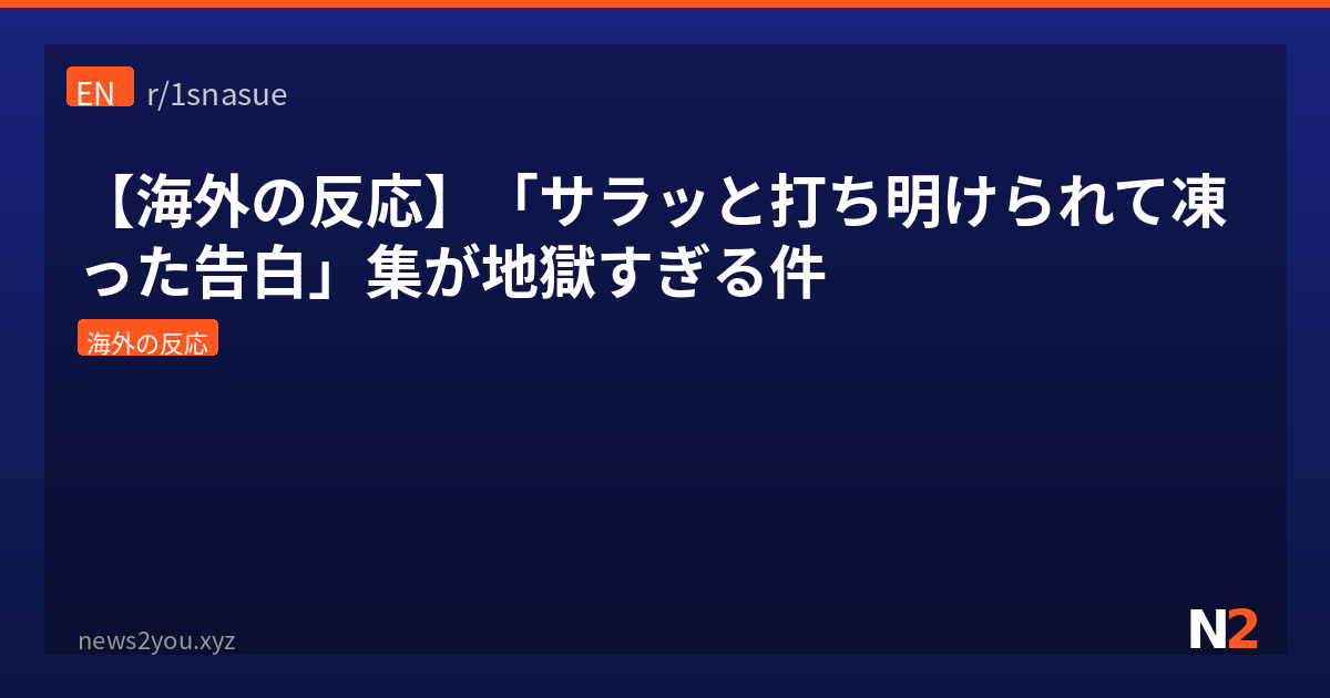 r/AskRedditで「誰かが何気なく打ち明けてきた中でいちばんヤバかったことは?」ってスレが立ってたんやけど、これが想像の50倍重い話のオンパレードで震えたわ。軽いカオス系から人としてアウトなやつまで振り幅がエグい。海外やと日本以上に「カジュアルに重い話する文化」があるらしくて、その温度差も含めて味わってくれな。