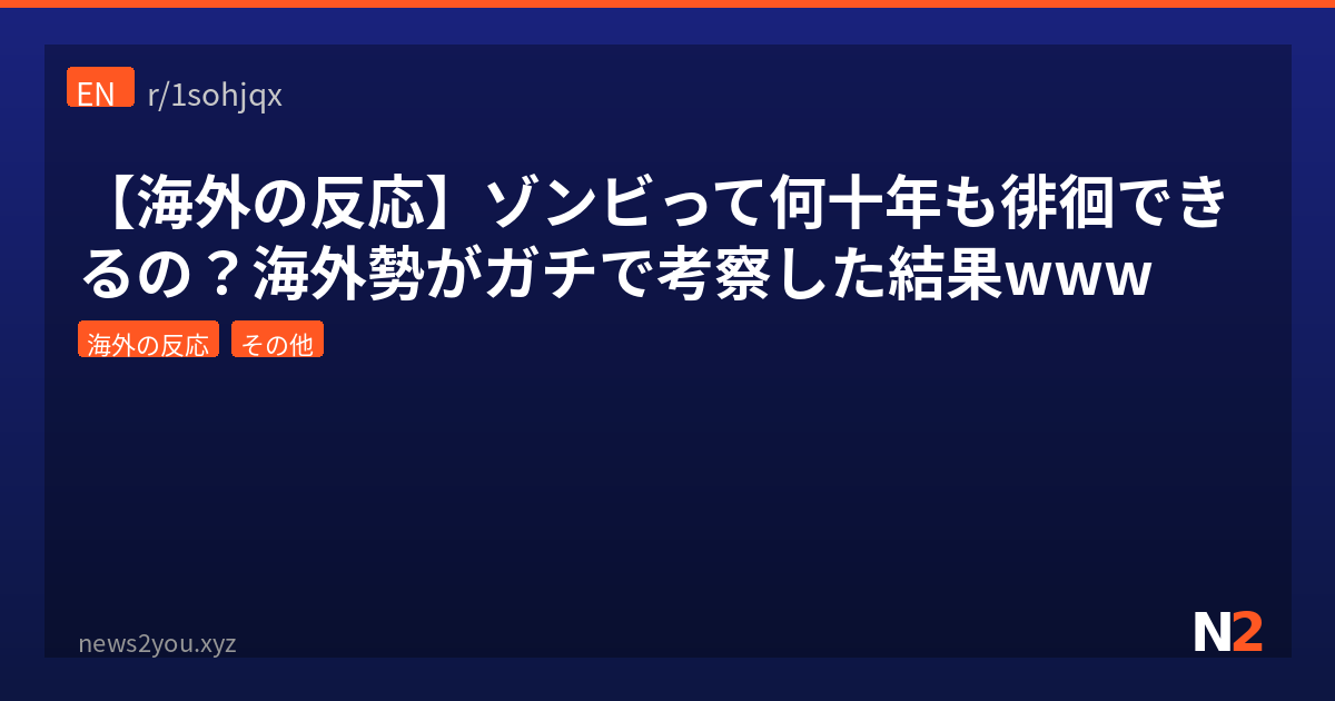 『ウォーキング・デッド』や『28年後…』って、ゾンビパンデミックが何十年も続いてる設定なんだけど、冷静に考えたら感染者って腐って死ぬよな?って話。海外redditで「いやおかしくね?」ってスレが立って、映画オタクたちがガチ考察してて面白かったわ。ちなみにゾンビ映画の元祖『ナイト・オブ・ザ・リビングデッド』(1968年)から数えると、ゾンビ作品ってもう半世紀以上の歴史があるんよな。