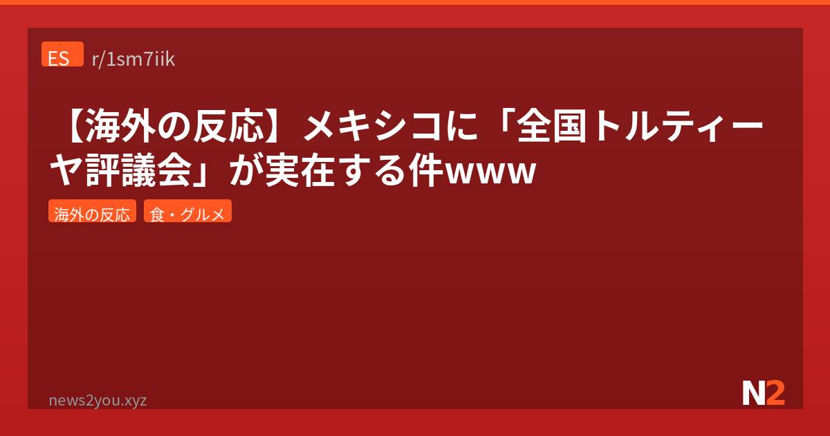 メキシコのRedditで「全国評議会(Consejo Nacional)」がバレて話題になってるんやが、なんとこれトルティーヤに関する公的な評議会らしいんよ。日本で言うと「全国お米評議会」みたいなノリで、トウモロコシ派vs小麦粉派で真剣に議論してるらしくて草。中南米では主食への愛がガチすぎて、こういう組織がマジで存在するのが面白いところなんよな。