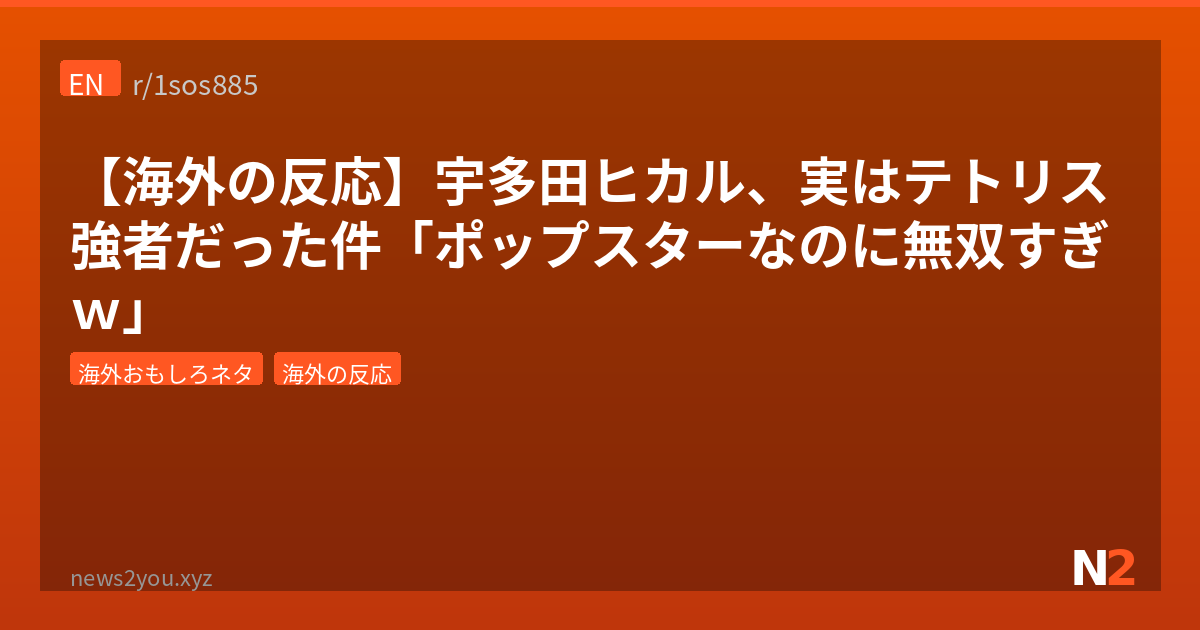 海外では『キングダム ハーツ』の主題歌を歌ってる人として有名な宇多田ヒカルだけど、実はテトリスめちゃくちゃ強いって知ってた? Redditで「TIL(今日知ったんだが)」スレが立って、実際のプレイ映像まで掘り起こされて海外ニキたちが盛り上がってるんよ。日本だと歌手としての圧倒的な実力で語られがちだけど、海外視点だとまた違う一面が刺さってるのが面白いわ。