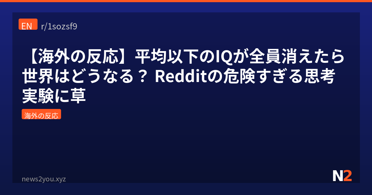 今回のスレ、最初はただのディストピア思考実験かと思ってたけど、ちゃんと読むと「IQで人を選別する発想の無意味さ」が浮かび上がってきて意外と深いんよな。世界人口81億の半分が消えたら気候変動は止まるけど、物流・医療・インフラが即死して結局何千万人も追加で死ぬっていう連鎖は、2011年の日本の震災や2020年のコロナを経験した我々としては妙にリアルに想像できてしまうわ。特に「IQ平均は100のまま」っていうツッコミ、数学的にも哲学的にも刺さるんよ。日本では「学歴社会」って言われるけど、実際は現場の職人や介護士やトラック運転手がいないと社会回らんのは同じで、IQ偏重の発想自体が傲慢なんやなって考えさせられた。ちなみにこの手の「人類半減したら」系の思考実験、Redditでは定期的にバズるテーマで、過去にも『サノスの指パッチンが現実に起きたら』みたいなスレが何度も立ってる。みんなは平均IQ以下が消えた世界、ユートピアになると思う? それとも派閥戦争のポストアポカリプスになると思う?