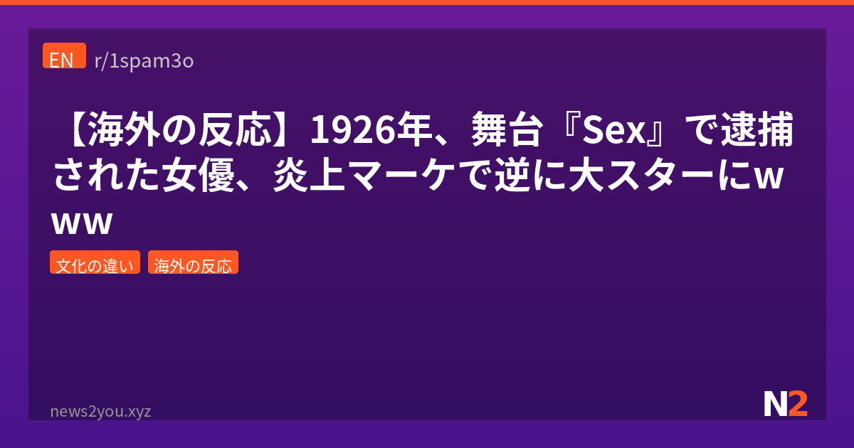 ✍️ 管理人: ぐう正論。そもそも『Sex』は売春や貧困層の女性をテーマにした作品で、性描写そのものよりも「階級社会の現実」を突きつけた部分が上流階級の逆鱗に触れたっていう見方が強いんよな。1920年代のNYは貧富の差がエグくて、ギャツビー的な華やかさの裏で売春や密造酒が蔓延してた。こういう「タブーの本質はどこにあるのか」って視点、今のSNS炎上にも通じるものがあって考えさせられるわ。