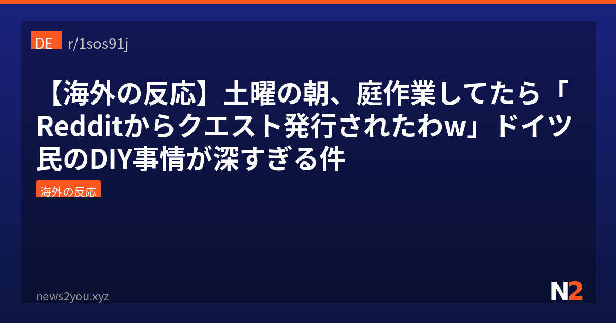 ドイツって騒音規制めちゃくちゃ厳しいの知ってた?日曜は芝刈り機すら禁止、平日も夜8時以降は電動工具NGっていう国民性なんよ。そんな中、土曜の朝に庭仕事してるドイツ人の画像が「これ俺やんけwww」って共感の嵐になってて、コメント欄がガチで哲学的になってるから紹介するわ。