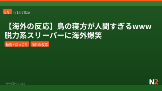 動物・ほっこり 【海外の反応】鳥の寝方が人間すぎるwww 脱力系スリーパーに海外爆笑 鳥がありえない脱力っぷりで爆睡する動画が海外で大バズり。起こされてキレ散らかす子ガモに「人間すぎる」と共感の嵐。 2026.04.17 動物・ほっこり海外の反応