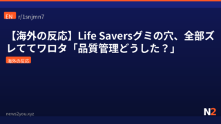 海外の反応 【海外の反応】Life Saversグミの穴、全部ズレててワロタ「品質管理どうした?」 アメリカの定番グミLife Saversの袋で穴の位置が全部ズレてる事件発生。製造ミスかと思いきや、コメント欄は大喜利大会になってて草。海外ネット民の反応がこちら。 2026.04.21 海外の反応