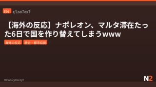 歴史・都市伝説 【海外の反応】ナポレオン、マルタ滞在たった6日で国を作り替えてしまうwww マルタ滞在たった6日間で奴隷制廃止・公教育・郵便制度まで作り上げたナポレオン。海外ネット民が彼の異常な行動力と光と闇を語る。 2026.04.21 歴史・都市伝説海外の反応