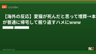 動物・ほっこり 【海外の反応】愛猫が死んだと思って埋葬→本物が普通に帰宅して掘り返すハメにwww 愛猫が死んだと思って庭に埋葬したら、数時間後に本物がピンピンして帰宅。埋めたのは近所の別の黒猫だった…という海外掲示板の壮絶エピソードとコメントをまとめました。 2026.04.02 動物・ほっこり海外の反応