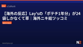 海外の反応 【海外の反応】Lay’sの「ポテチ1年分」が24袋しかなくて草|海外ニキ総ツッコミ Lay'sの懸賞で「ポテチ1年分」をゲットした当選者。しかし届いたのはまさかの24袋…Reddit民総ツッコミの大喜利祭りになった件をまとめ。 2026.04.20 海外の反応