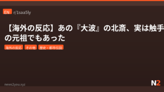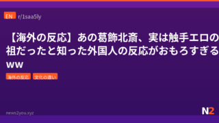 文化の違い 【海外の反応】あの葛飾北斎、実は触手エロの元祖だったと知った外国人の反応がおもろすぎるwww 葛飾北斎が『神奈川沖浪裏』だけでなく触手エロの元祖『蛸と海女』も描いていた事実に、海外Redditユーザーたちが驚愕。「エロ漫画のビジネスモデルの走り」「大波はタコの続編説」など爆笑コメント続出。 2026.04.07 文化の違い海外の反応