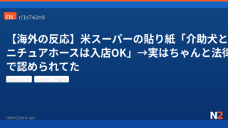 今日知った雑学 【海外の反応】米スーパーの貼り紙「介助犬とミニチュアホースは入店OK」→実はちゃんと法律で認められてた アメリカではミニチュアホースが正式な介助動物として法律で認められている。犬より力が強く寿命も長い、意外と知られていないその理由とは。 2026.04.02 今日知った雑学海外の反応